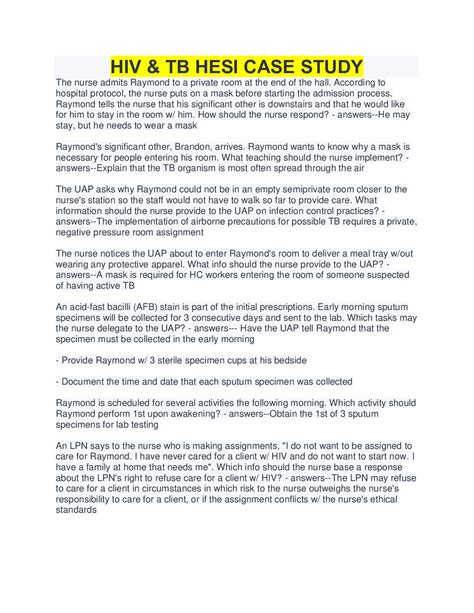 Download Hesi Case Study Hiv Tb Answers mobipocket